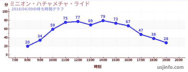• ミニオン・ハチャメチャ・ライド$B$N(B2018年04月09日の待ち時間