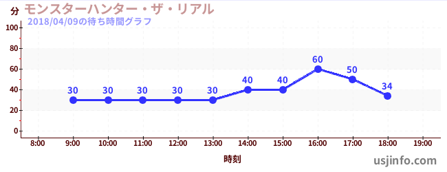 • モンスターハンター・ザ・リアル$B$N(B2018年04月09日の待ち時間