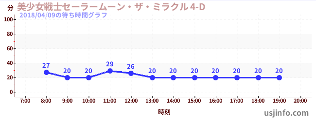 • 美少女戦士セーラームーン・ザ・ミラクル 4-D$B$N(B2018年04月09日の待ち時間