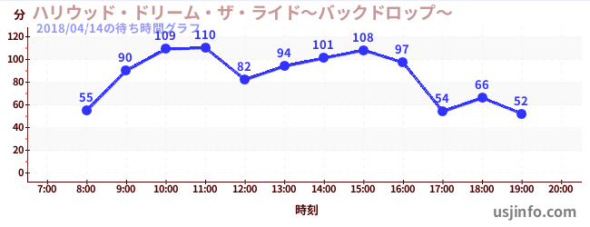 • ハリウッド・ドリーム・ザ・ライド〜バックドロップ〜$B$N(B2018年04月14日の待ち時間
