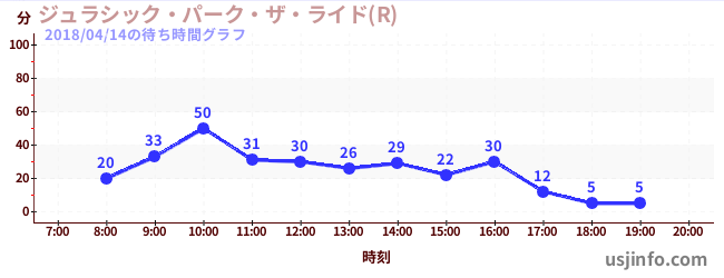 • ジュラシック・パーク・ザ・ライド(R)$B$N(B2018年04月14日の待ち時間