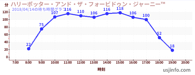 • ハリーポッター・アンド・ザ・フォービドゥン・ジャーニー™$B$N(B2018年04月14日の待ち時間