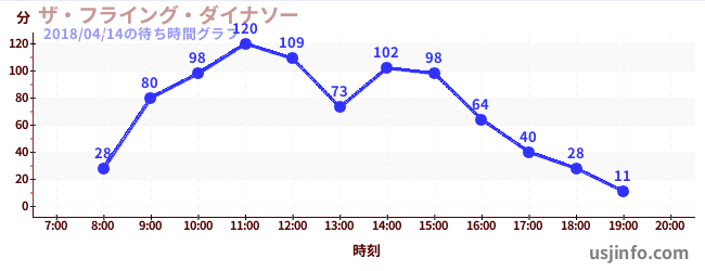 • ザ・フライング・ダイナソー$B$N(B2018年04月14日の待ち時間