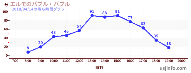 • エルモのバブル・バブル$B$N(B2018年04月14日の待ち時間
