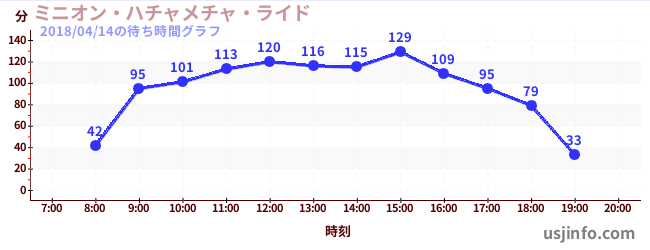 • ミニオン・ハチャメチャ・ライド$B$N(B2018年04月14日の待ち時間