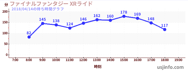 • ファイナルファンタジー XRライド$B$N(B2018年04月14日の待ち時間