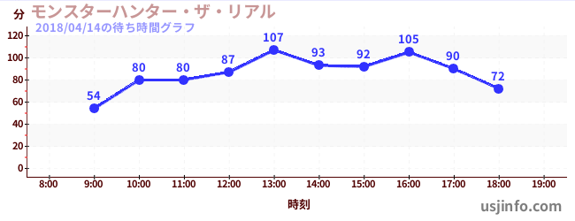 • モンスターハンター・ザ・リアル$B$N(B2018年04月14日の待ち時間