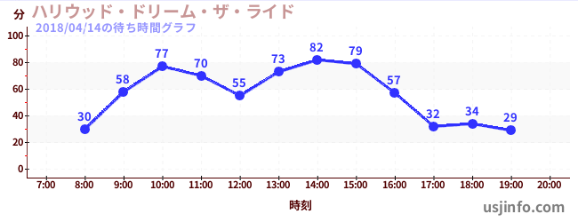 • ハリウッド・ドリーム・ザ・ライド$B$N(B2018年04月14日の待ち時間