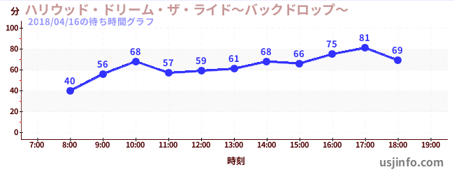 • ハリウッド・ドリーム・ザ・ライド〜バックドロップ〜$B$N(B2018年04月16日の待ち時間