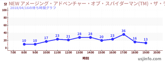 • NEW アメージング・アドベンチャー・オブ・スパイダーマン(TM)・ザ・ライド 4K3D$B$N(B2018年04月16日の待ち時間