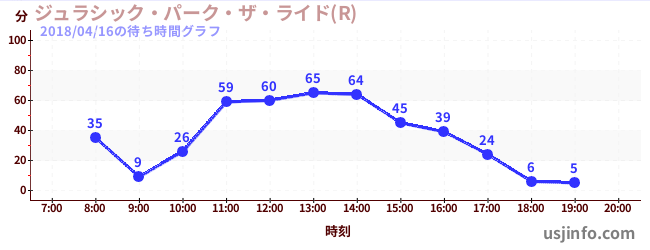 • ジュラシック・パーク・ザ・ライド(R)$B$N(B2018年04月16日の待ち時間