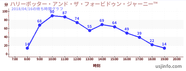 • ハリーポッター・アンド・ザ・フォービドゥン・ジャーニー™$B$N(B2018年04月16日の待ち時間