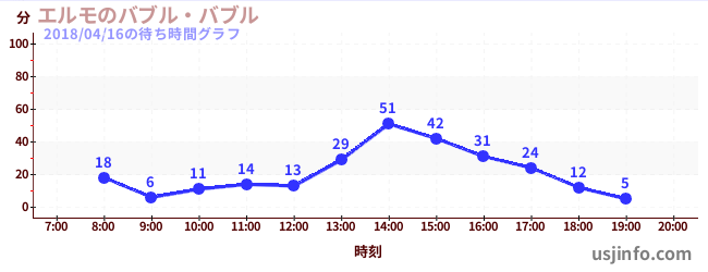 • エルモのバブル・バブル$B$N(B2018年04月16日の待ち時間