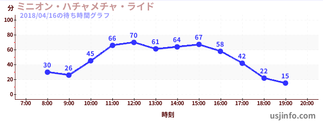 • ミニオン・ハチャメチャ・ライド$B$N(B2018年04月16日の待ち時間
