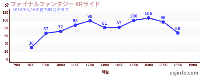 • ファイナルファンタジー XRライド$B$N(B2018年04月16日の待ち時間