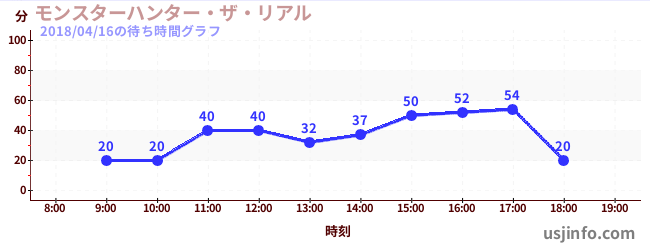 • モンスターハンター・ザ・リアル$B$N(B2018年04月16日の待ち時間