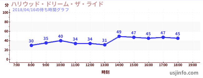 • ハリウッド・ドリーム・ザ・ライド$B$N(B2018年04月16日の待ち時間