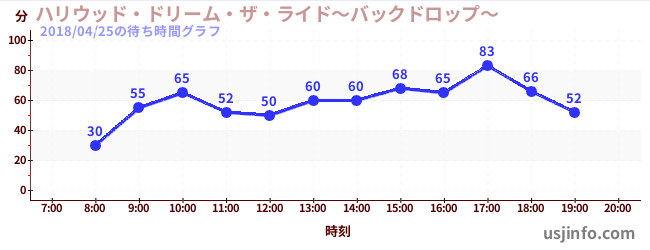 • ハリウッド・ドリーム・ザ・ライド〜バックドロップ〜$B$N(B2018年04月25日の待ち時間