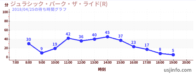 • ジュラシック・パーク・ザ・ライド(R)$B$N(B2018年04月25日の待ち時間