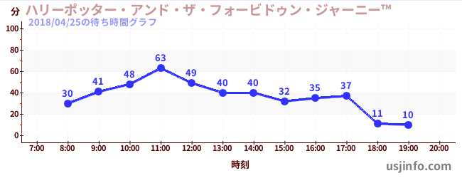• ハリーポッター・アンド・ザ・フォービドゥン・ジャーニー™$B$N(B2018年04月25日の待ち時間