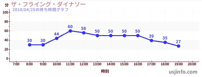 • ザ・フライング・ダイナソー$B$N(B2018年04月25日の待ち時間