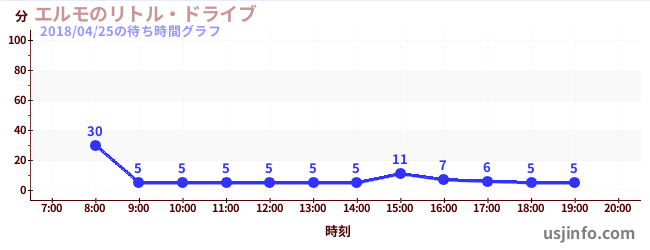 • エルモのリトル・ドライブ$B$N(B2018年04月25日の待ち時間