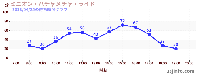 • ミニオン・ハチャメチャ・ライド$B$N(B2018年04月25日の待ち時間