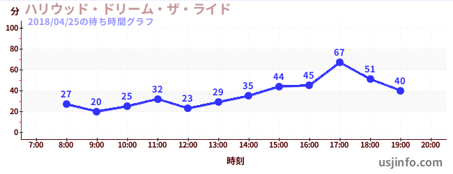 • ハリウッド・ドリーム・ザ・ライド$B$N(B2018年04月25日の待ち時間