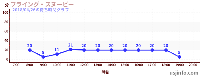 • フライング・スヌーピー$B$N(B2018年04月26日の待ち時間