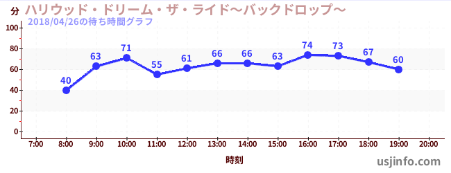 • ハリウッド・ドリーム・ザ・ライド〜バックドロップ〜$B$N(B2018年04月26日の待ち時間