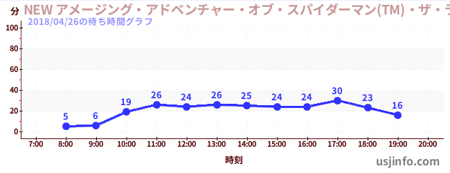 • NEW アメージング・アドベンチャー・オブ・スパイダーマン(TM)・ザ・ライド 4K3D$B$N(B2018年04月26日の待ち時間