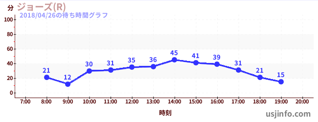 • ジョーズ(R)$B$N(B2018年04月26日の待ち時間