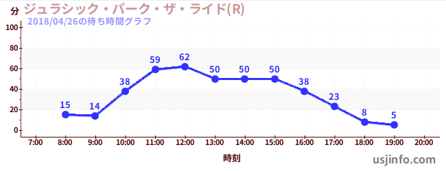 • ジュラシック・パーク・ザ・ライド(R)$B$N(B2018年04月26日の待ち時間