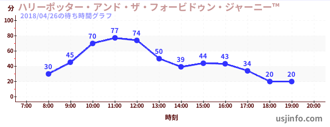 • ハリーポッター・アンド・ザ・フォービドゥン・ジャーニー™$B$N(B2018年04月26日の待ち時間