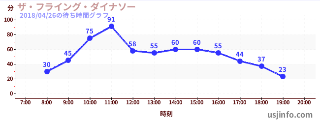 • ザ・フライング・ダイナソー$B$N(B2018年04月26日の待ち時間