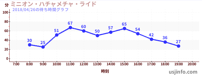 • ミニオン・ハチャメチャ・ライド$B$N(B2018年04月26日の待ち時間