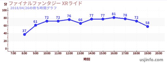 • ファイナルファンタジー XRライド$B$N(B2018年04月26日の待ち時間
