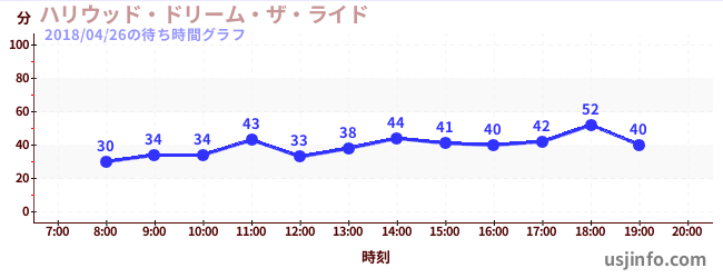 • ハリウッド・ドリーム・ザ・ライド$B$N(B2018年04月26日の待ち時間