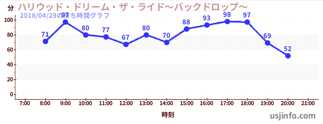 • ハリウッド・ドリーム・ザ・ライド〜バックドロップ〜$B$N(B2018年04月29日の待ち時間