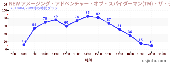 • NEW アメージング・アドベンチャー・オブ・スパイダーマン(TM)・ザ・ライド 4K3D$B$N(B2018年04月29日の待ち時間