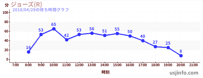 • ジョーズ(R)$B$N(B2018年04月29日の待ち時間