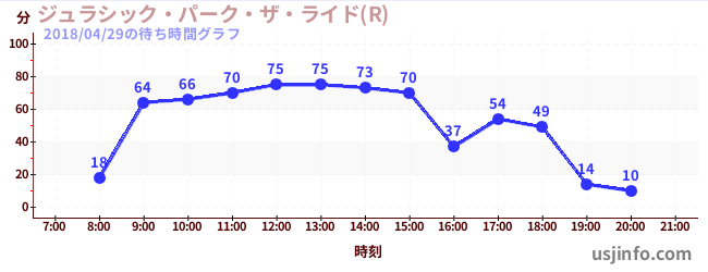 • ジュラシック・パーク・ザ・ライド(R)$B$N(B2018年04月29日の待ち時間