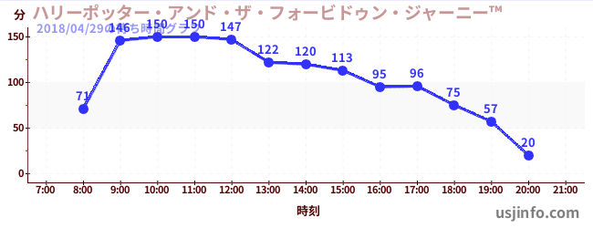 • ハリーポッター・アンド・ザ・フォービドゥン・ジャーニー™$B$N(B2018年04月29日の待ち時間