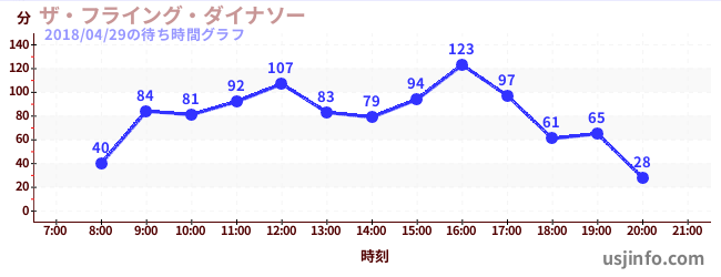 • ザ・フライング・ダイナソー$B$N(B2018年04月29日の待ち時間