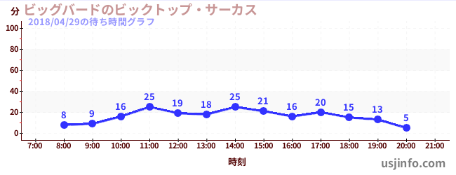 • ビッグバードのビックトップ・サーカス$B$N(B2018年04月29日の待ち時間