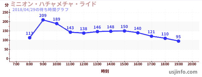 • ミニオン・ハチャメチャ・ライド$B$N(B2018年04月29日の待ち時間