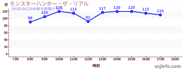 • モンスターハンター・ザ・リアル$B$N(B2018年04月29日の待ち時間