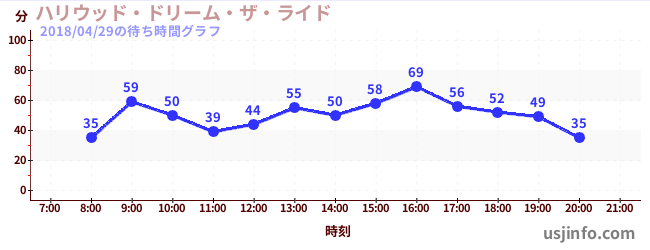 • ハリウッド・ドリーム・ザ・ライド$B$N(B2018年04月29日の待ち時間