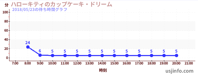 • ハローキティのカップケーキ・ドリーム$B$N(B2018年05月23日の待ち時間