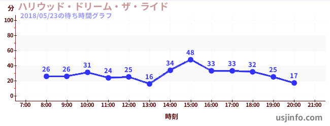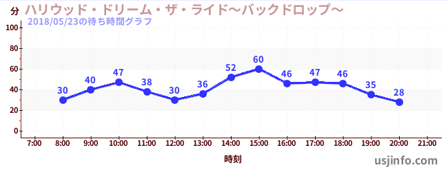 • ハリウッド・ドリーム・ザ・ライド〜バックドロップ〜$B$N(B2018年05月23日の待ち時間